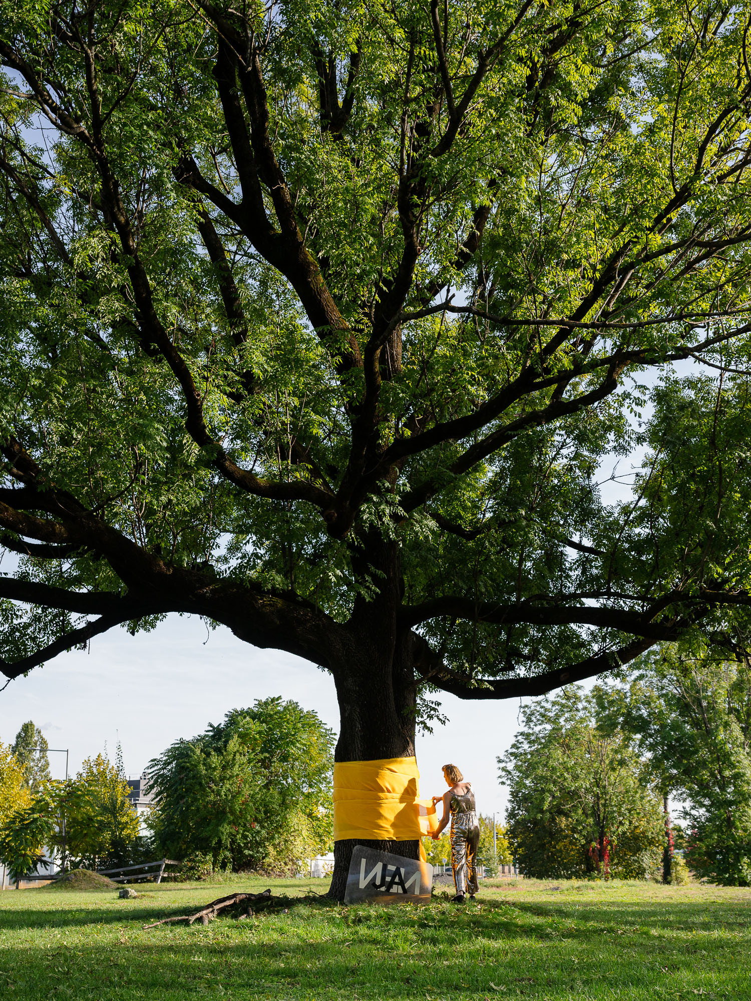 Mensch sorgt sich um Baum. Die Zukunft ist offen.